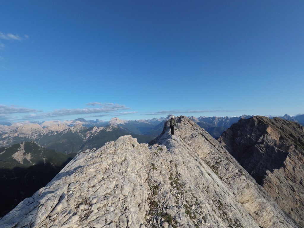 Con l’adrenalina che fa a gara con la stanchezza procediamo spediti alla vista del punto più alto della lunghissima cresta: la Cima dei Preti.