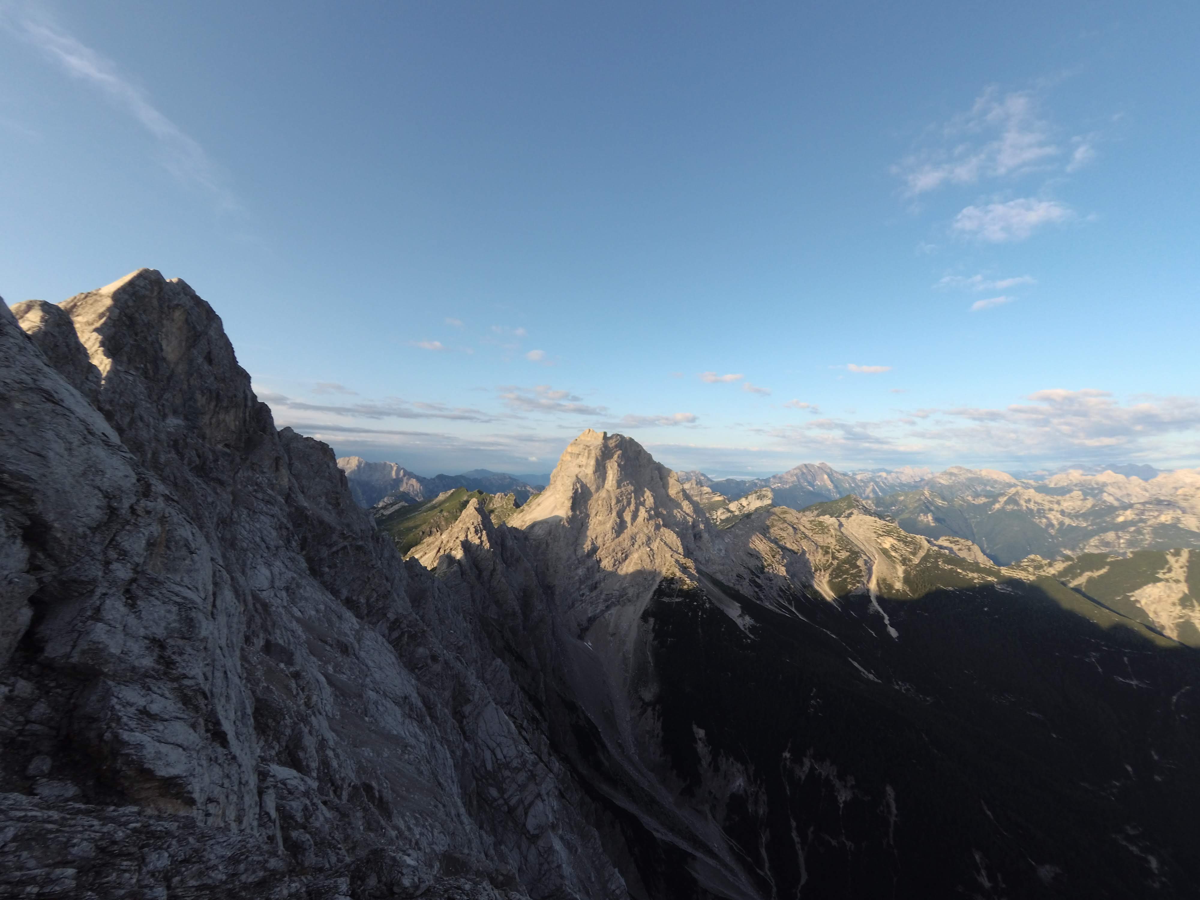 Procediamo concentrati alzando ogni tanto gli occhi dagli appigli per guardare il panorama: il sole sta pian piano illuminando le immense pareti rossastre delle più famose Dolomiti che ci sembra quasi di poter toccare.
