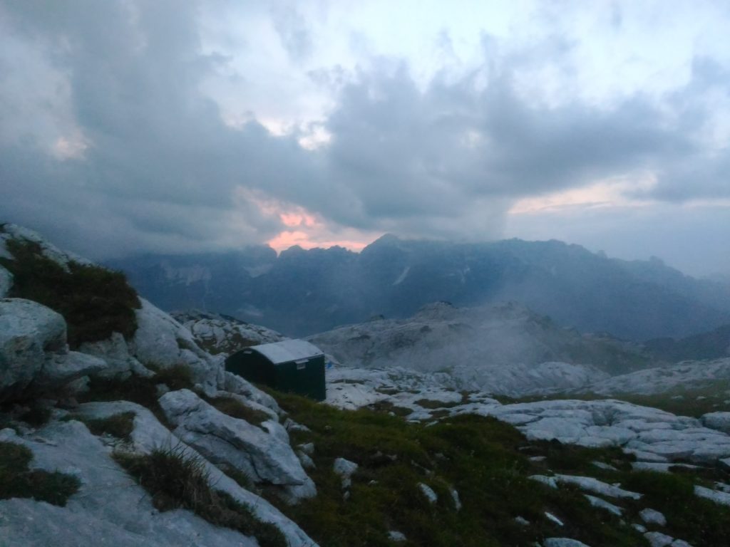 La meta: dormire al bivacco Marussich e il giorno seguente percorrere un anello dal bivacco fino al Canin, Sella Prevala, Marussich e ritorno alla macchina.