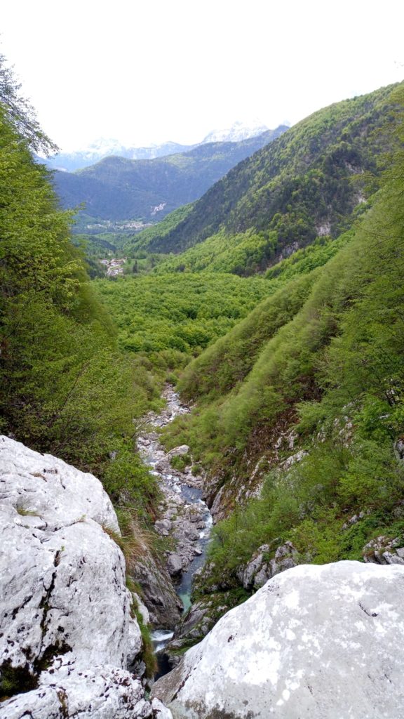 La voglia di gioco contagia anche Mattia che mi raggiunge e assieme terminiamo di esplorare il percorso del fiume fino a sporgerci sull’orlo del grande salto sul quale notiamo essere presenti gli spit, mi sa che toccherà tornare armati di corda e provare questa bella calata.