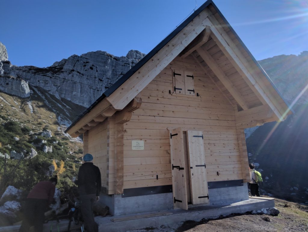 Bivacco recentemente ricostruito (inaugurazione nell’estate 2018) dopo che la precedente costruzione (tipico bivacco rosso in lamiera) è stato distrutto da una frana.