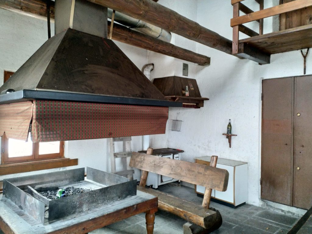 Cucina: presente uno spolert e un caminetto; non presente una dispensa, pentole o posate