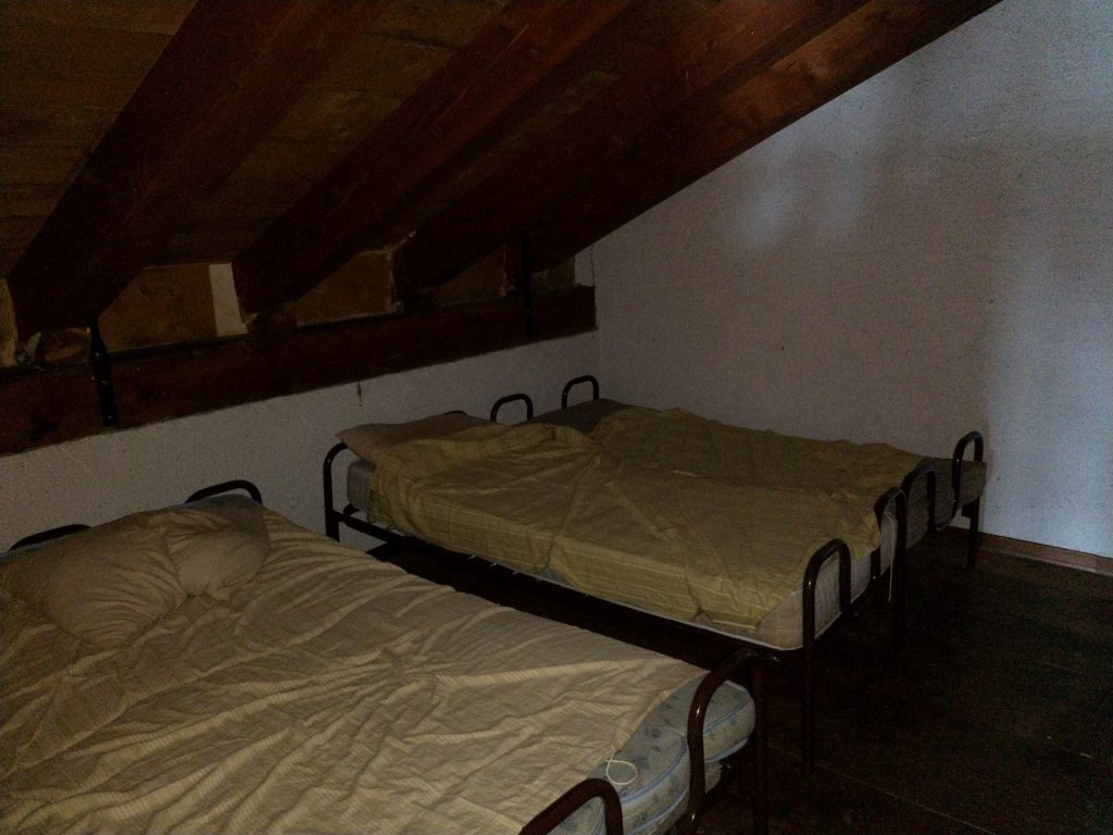 La stanza per dormire si trova ad un piano rialzato e presenta 8 letti con materasso.